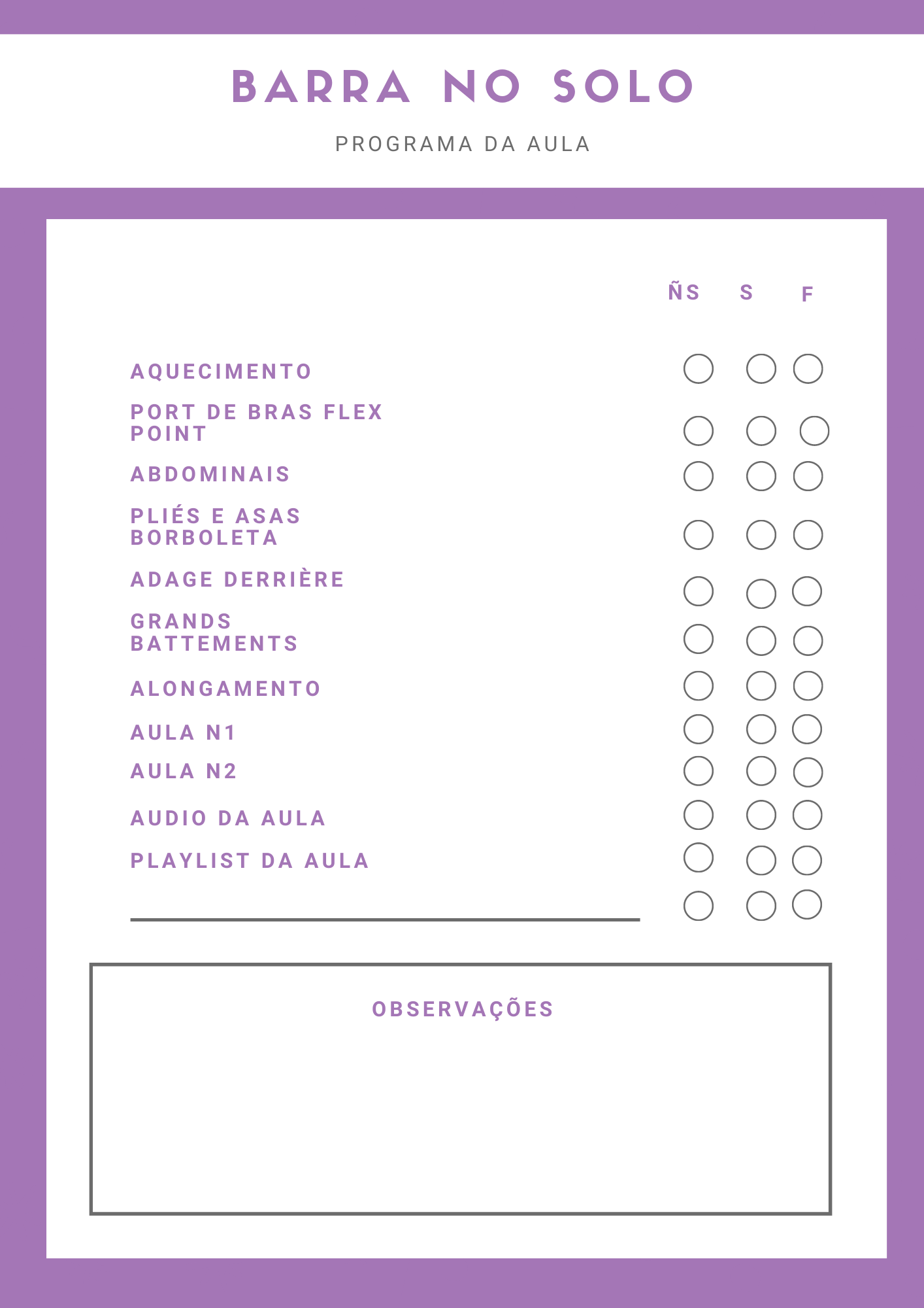 Durante anos, esta foi a única modalidade que servia de condicionamento físico aos bailarinos clássicos. E se ainda não sabes o que é, eu passo a explicar. Tal como o nome nos indica, Barra vem de barra de Ballet e Solo, vem de chão. Inclusive há quem chame a esta modalidade Barra de Chão. Conclusão: os bailarinos praticam os exercícios da barra, no chão. Por isso, ao longo da aula vais ouvir muitos nomes de movimentos ou de exercícios em francês, tal como a terminologia do Ballet.